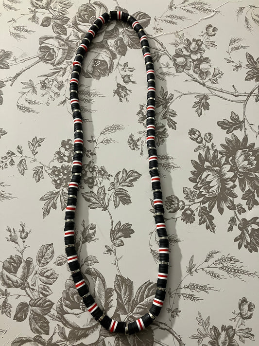 Black, Red and White Heishi Beads
