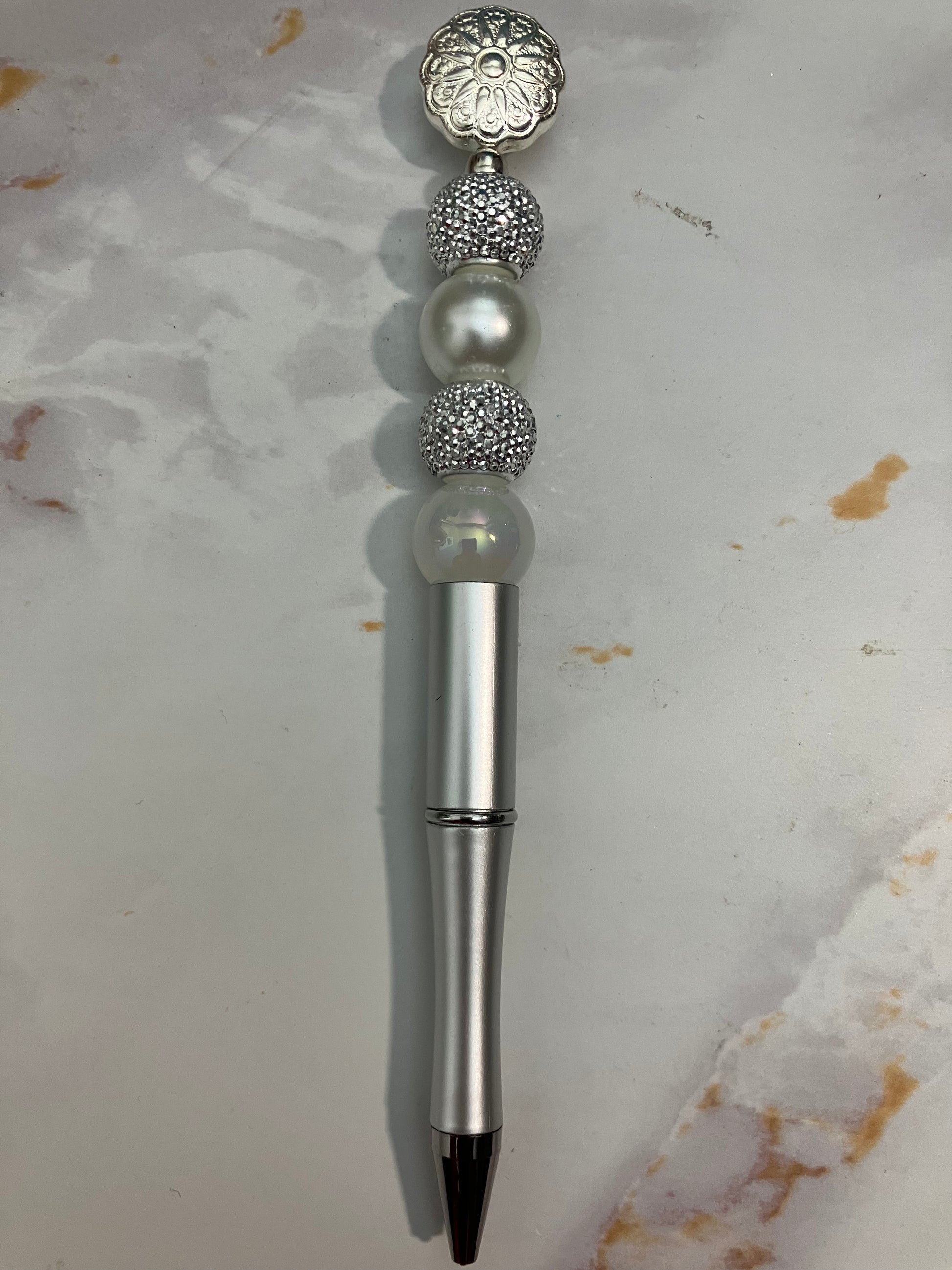 Silver Beaded Pen. Free refill ink stick included with all pen purchases.
